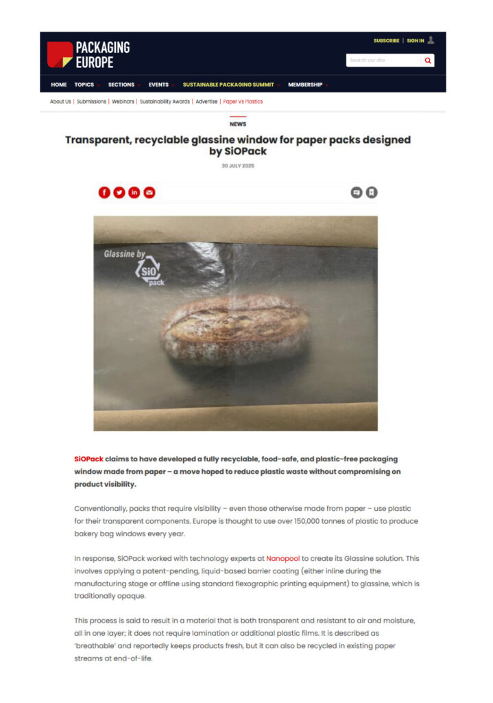 Packaging Europe & Packaging Journal – Fachveröffentlichungen über die industrielle Anwendung der NP® SiOPack®-Barriere